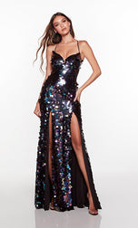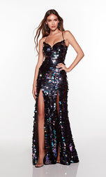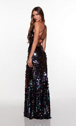 Get ready to have all eyes on you with this beautiful Alyce Paris long prom dress! It's made with Paillette fabric that'll enhance your exquisite body and keep you sparkling all night long. A V-neckline that'll give you some exposure along with bust coverage. The eye-catching open back has sexy lace-up straps that bring more detail to the dress. And the sexiness doesn't stop there, you'll be able to show off your gorgeous legs with not one, but two slits. In this dress, be prepared to have everyone's attention all night!