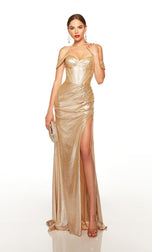 It's giving Glamour! It's giving Exquisite! It's giving Show-stopping! Shut down Prom 2023 in this long Alyce Paris dress. Created with shiny and smooth metallic knit fabric that hugs your body in all the right places. The corset bodice with off-the-shoulder straps shows off your tiny waist! In addition, there's shirring right below the corset to conceal your lower stomach. Not to mention, the ruching placed right above your bottom enhances your perfect shape. And we can't forget about the sexy slit! No one will be able to take their eyes off of you!