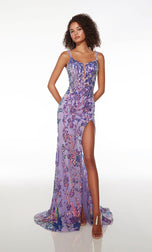 Alyce Paris' Style 61661 isn't just a prom dress, it's a prom dream woven from stardust. An illusion corset whispers magic on your curves, an open back laced with secrets awaits stolen glances, and a daring high slit paints the dance floor with intrigue. A whisper of a train follows like starlight trailing your dreams, making you the queen of the night. Own your magic, own the dance floor, own your own prom fairytale in this Alyce Paris masterpiece. Explore their dazzling options and find the prom dress that makes you the queen you truly are! (Bonus: statement jewels and a touch of mystery complete the spell.)