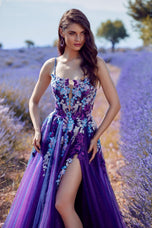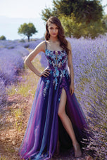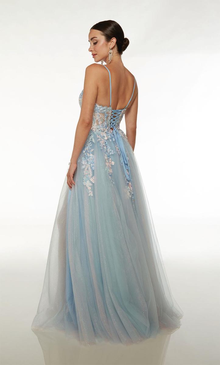 Alyce Paris' 61673 is a prom dream come true: a bodice blooming with delicate floral lace whispers romance, its A-line skirt a cascade of shimmering flower glitter tulle catching the light with every twirl. The lace-up back adds a touch of modern intrigue, letting you personalize the fit and blossom into the radiant star of the night. Step into your fairytale and shine prom isn't just a dress, it's a feeling, and 61673 makes you feel unforgettable! Don't forget to explore Alyce Paris's other options find the dress that makes you bloom into the flower you are, ready to own the dance floor like the dazzling star you are!