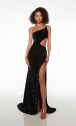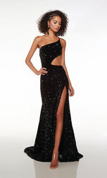 Alyce Paris One Shoulder Velvet Sequin Prom Dress 61707