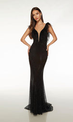 Reign supreme at Prom 2024 in the Alyce Paris Style 61715, a masterpiece that's pure magic. Imagine cascading waves of shimmering crystal mesh, like fallen stars catching the light, draping over a daringly plunging neckline that's made for stealing hearts. Delicate feathers, as light as whispered secrets, adorn your shoulders, adding an air of captivating elegance to your every move. This isn't just a prom dress; it's a promise of unforgettable moments, etched forever in the magic of the dance floor. The slight train, a whisper of luxury, follows your every step, announcing your arrival and capturing the spotlight like a queen's procession.Reimagine Prom 2024 in this Alyce Paris masterpiece. This is you, transformed into a vision of breathtaking confidence and effortless grace. Own your sparkle. Own the night. Own the Alyce Paris magic. #UnleashYourInnerStarlight #Prom2024