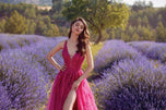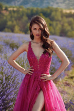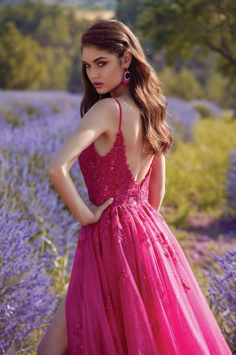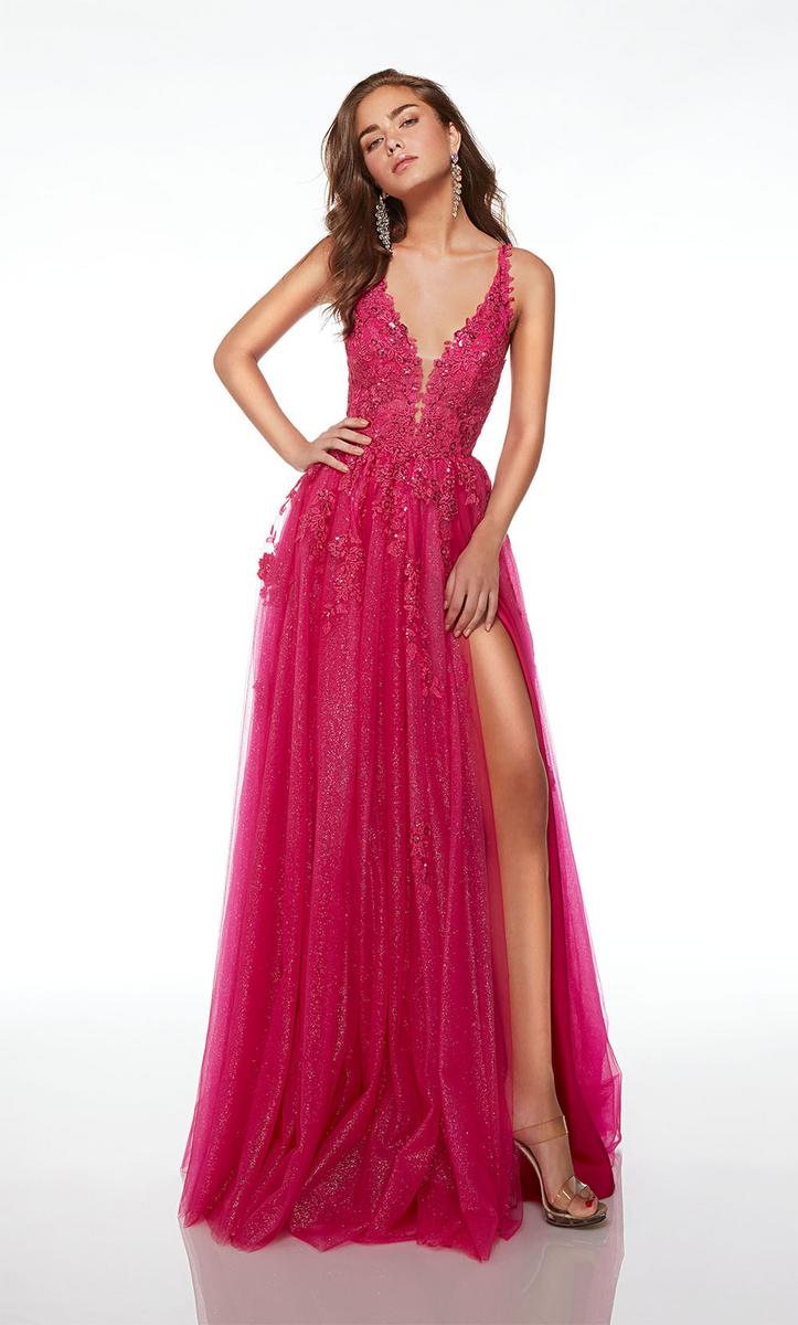 Float into prom night like a moonlit dream in the Alyce Paris dress, where shimmering tulle and delicate lace intertwine to create a vision of pure glamour. (Imagine a delicate frame hugging your curves, a hint of intrigue beneath, like .) The illusion corset whispers secrets of romance, its intricate threads catching the light like dewdrops on a rose. Then, the glitter tulle skirt cascades down, a galaxy fallen to earth, each layer catching the moonlight and transforming it into a kaleidoscope of sparkles. (Think soft fabric catching the moonlight, like .) Delicate 3D flowers dance among the glitter, echoing the bodice in a symphony of blooming beauty. A daring high slit peeks through the magic, adding a touch of playful mystery to your elegant allure.