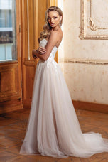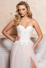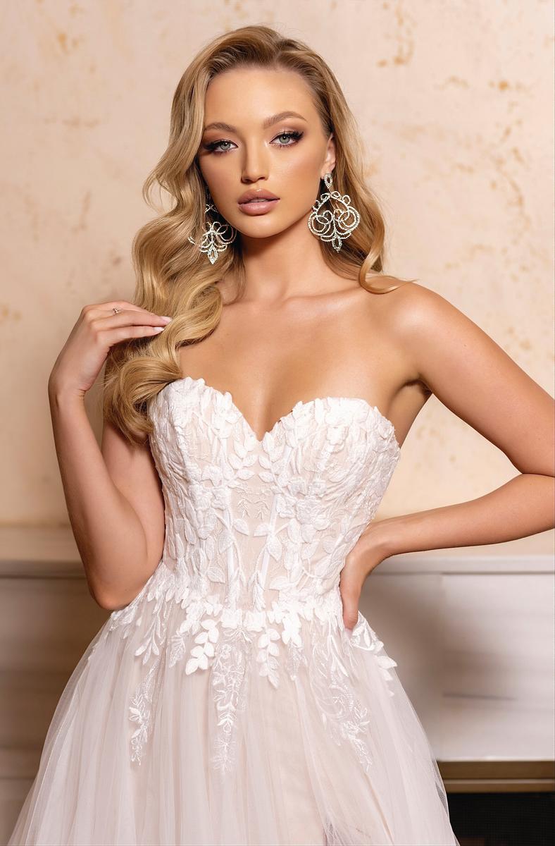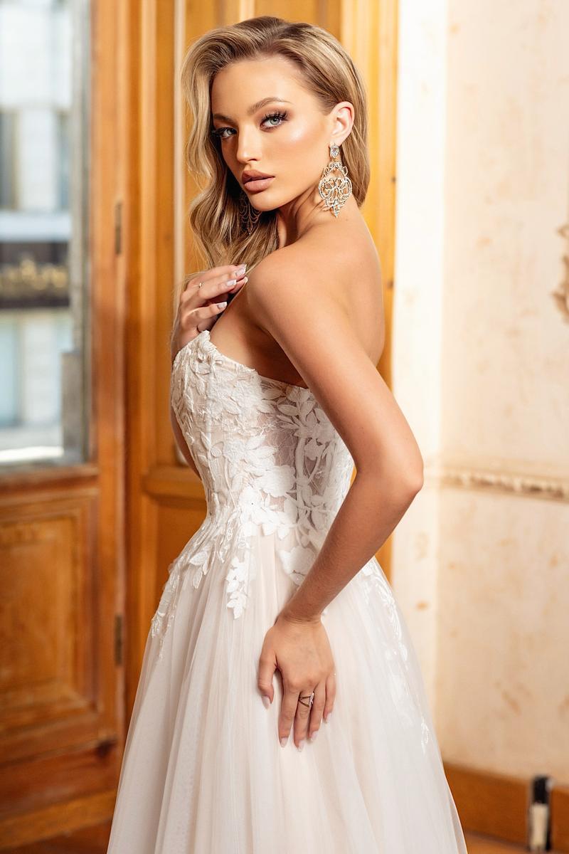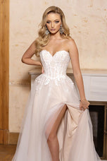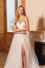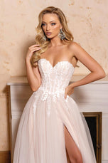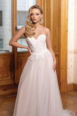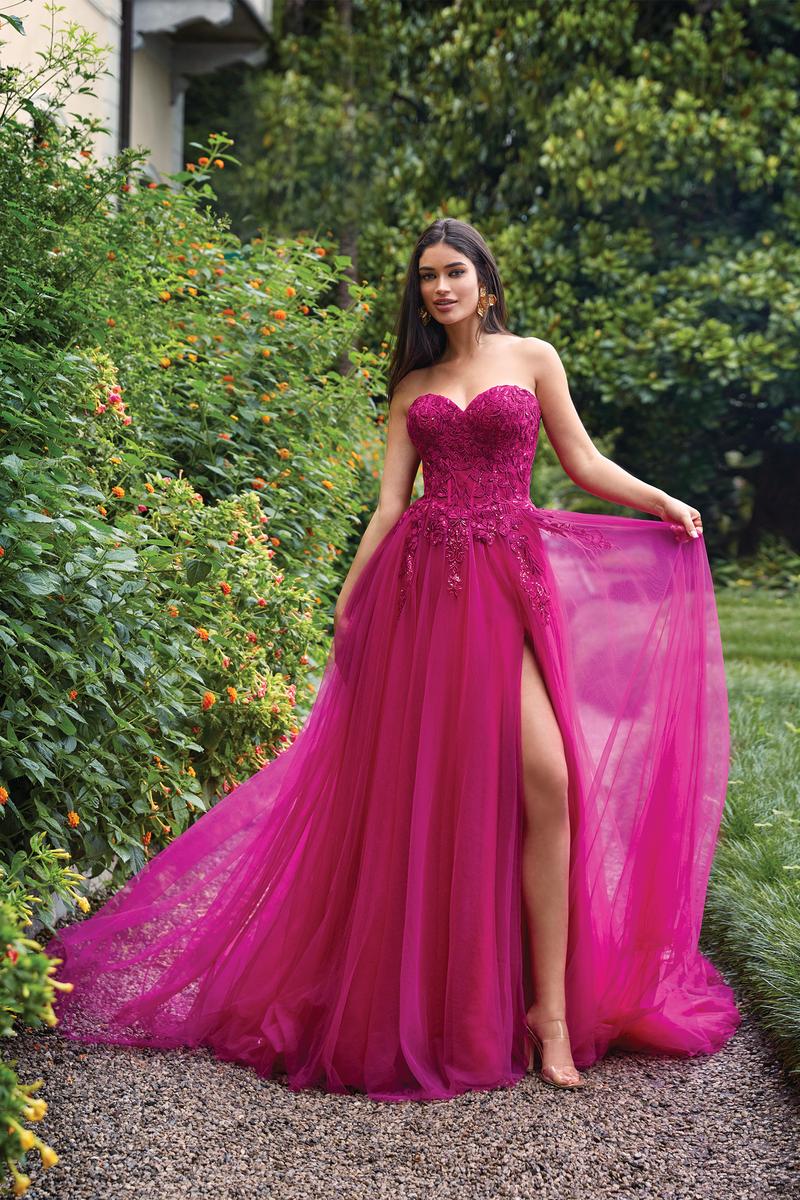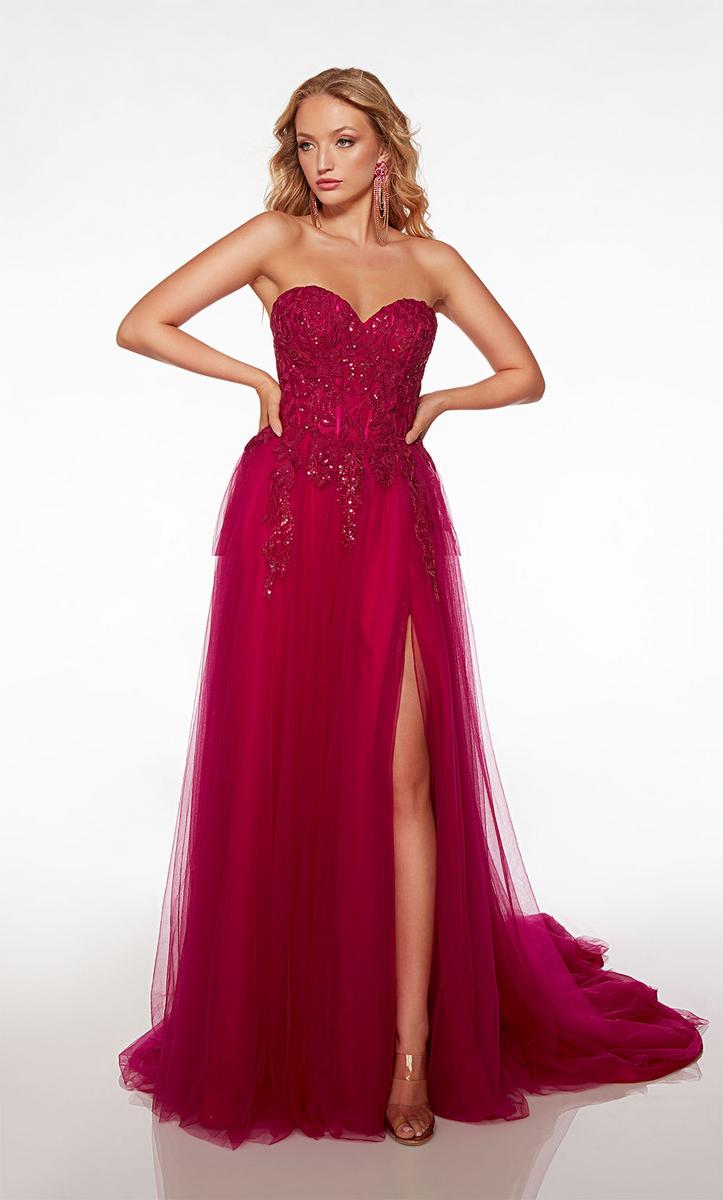 Embrace ethereal elegance in the Alyce Paris Style 61723, a prom dress where moonlight whispers become shimmering lace. Imagine a strapless sweetheart neckline (picture a delicate frame hugging your curves, a hint of intrigue beneath) that melts into an illusion corset, its intricate threads whispering secrets of magic. (Think: intricate lace swirling like moonlight, barely there yet captivating.) Then, soft tulle cascades down in an A-line silhouette (envision layers catching the light, like whispers of moonlight dancing), each twirl a promise of stolen glances and moonlit waltzes. This isn't just a prom dress, it's an experience, a feeling of floating on air, of being the star of your own fairytale. So own the ethereal, own the beauty, and make Style 61723 the canvas for your unforgettable prom night.