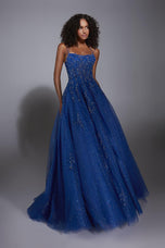 A dress like this makes you feel like prom night is actually the opening scene of your own fairytale movie. The glitter tulle catches every bit of chandelier light and reflects it in the softest, most enchanted way. The see-through corset, paired with the straight neckline and thin straps, keeps the bodice feminine while the lace detailing adds that storybook touch. The A-line skirt flows out beautifully, and the fact that this Alyce Paris long dress has pockets is such a win. It is elegant, girly, dreamy, and so prom 2025 worthy.Imagine turning in this gown and the skirt gliding like a cloud around you as photos snap from every angle. The lace-up back lets you adjust your fit exactly how you want it, so you feel secure while looking like the main character of an enchanted fairy garden. If you have always wanted a moment that feels romantic without being over the top, this is that sweet, magical middle. A princess vibe that is feminine, classic, and unforgettable.
