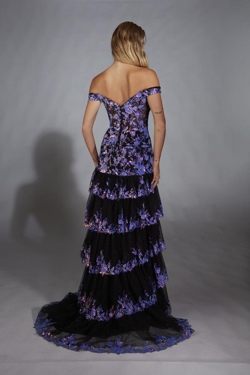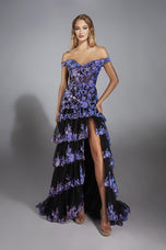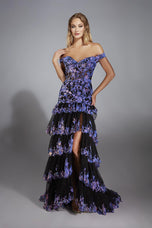 Prom night is your time to shine, and this Alyce Paris A-line long dress makes sure of it. The off-the-shoulder straps give that soft, romantic look while the sequin floral details shimmer under every light. Tiered ruffles cascade down the skirt, giving the whole gown a high-fashion feel that is still fun and flirty. The slit adds just the right touch of bold energy, making it easy to strike that confident red carpet pose. It is the kind of dress that looks like it belongs in a prom movie montage.The mix of tulle and sequins makes the dress sparkle in motion, so every step feels like your main character moment. It is playful, dramatic, and just the right amount of extra for a night as big as Prom 2025. The off-the-shoulder design keeps it elegant while the ruffled layers bring the fun, making this gown perfect for the girl who wants to stand out without even trying. Glamorous, girly, and full of personality, this Alyce Paris dress was made to turn heads the second you walk in.