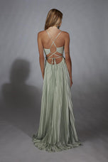 Soft and graceful with a touch of quiet luxury, this Alyce Paris long dress gives dreamy energy that feels straight out of a modern fairytale. The satin chiffon fabric glides effortlessly, and the V-neckline with thin straps adds a simple yet elegant touch. The ruched bodice shapes the top perfectly while the pleated skirt flows with every step, so you look picture-ready even when you are just walking into prom. It is the kind of gown that feels timeless and makes you glow without even trying.A lace-up back adds that trendy detail everyone loves for Prom 2025 while also keeping the fit secure and comfortable. The overall look feels airy and soft with a bit of movie scene magic when you move. If your vibe is all about effortless beauty and calm confidence, this dress fits that aesthetic perfectly. It is giving angelic energy mixed with subtle glam, which is exactly what makes it unforgettable.