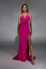 Getting ready for Prom 2025 hits different when the gown already feels like a classic moment. The cool-touch jersey fabric on this Alyce Paris long dress has that smooth, fitted look that lies beautifully and gives a soft, sleek finish in pictures. The halterneck and V-neckline combination is flattering without trying too hard, and the ruching over the midsection adds that little detail that keeps the dress from feeling plain. The slit also gives you the perfect chance to show off your heels and pose naturally, without feeling stiff or locked in one angle.An open back ties everything together with a slightly unexpected twist that keeps the dress looking modern and fresh. It is the kind of style that can go viral in a before-and-after transformation reel because it makes a statement without looking loud. If you love a fitted gown that feels timeless but still trendy for Prom 2025, this one checks all the boxes. It is elegant, sleek, and just the right mix of simple and stunning.
