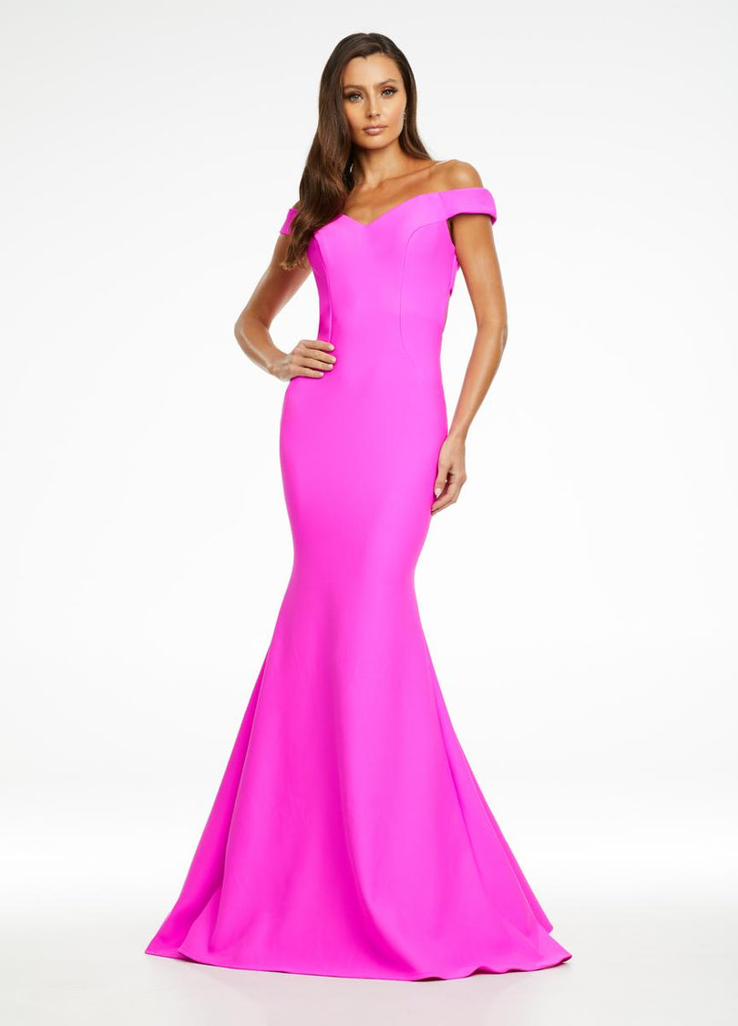 Be sure to stand out in this off the shoulder gown featuring the signature ASHLEYlauren criss-cross back.