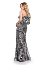 Embrace your uniqueness in this fully beaded formal dress created by ASHLEYlauren, style 11671, from Spring 2024. The gown displays a one shoulder neckline on slim fitting silhouette and side slit on the skirt. The gown is garnished with an eye-catching bead pattern that flows from top to bottom. Dare to be different when you showcase this gem to any social gathering. For additional details give us call at Terry Costa, chat with us or visit us in store.