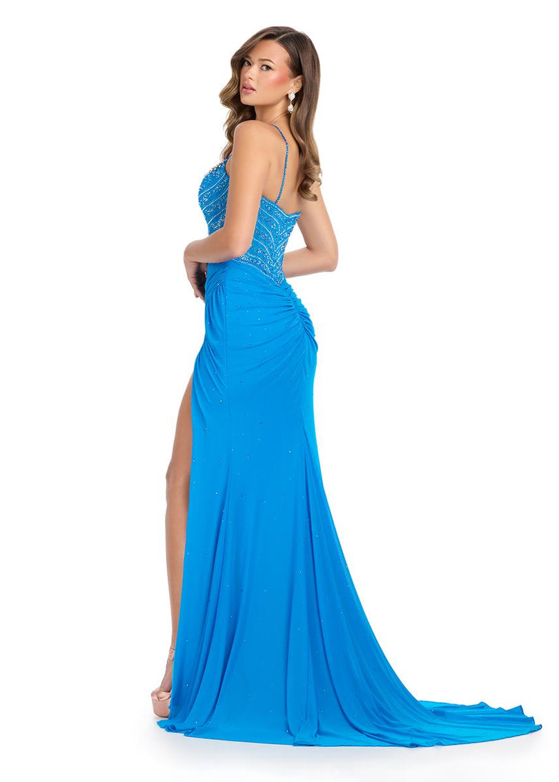 Dive into the latest trends from Spring 2025 collection like this ASHLEYlauren. 11691, features a beaded coset bustier that will not only have you shining from every angle but also give you a snatched waist. The fitted skirt is adorned with heat stones that cascade to the bottom of the skirt. A leg slit adds a sexy touch.The pastel colors are a perfect choice for any spring event.