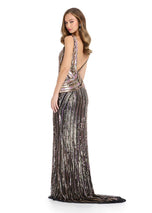 11790, is giving us goddess vibes! The shining and delicate beadwork give it a luxurious touch. A v-neckline with thick straps for extra support and open back that is just mesmerizing. Lets go back to the dazzling beadwork, as its placed perfectly to accentuate your curves. This ASHLEYLauren gown is definitely a *chefs kiss*