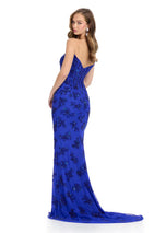 11818, is an elegant gown that's beaded to perfection! The intricate bead pattern will have everyone staring. The rich and vibrant colors, red and royal are perfect for Prom and any social gathering. The strapless sweetheart neckline showcases a deep v and low scoop back.