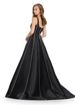 ASHLEYlauren 11882 Mikado Ball Gown is pure perfection with a touch of glam! This timeless beauty features a structured design that flatters every curve, with pearl trim along the seams for an elegant yet modern twist. The luxurious Mikado fabric adds a sophisticated sheen, making this gown a showstopper from every angle. The square neckline and classic ball gown silhouette create a regal vibe thats perfect for prom, galas, or any red-carpet-worthy event.Style it with sparkling earrings and a sleek updo to let the pearl details shine. Whether you're twirling on the dance floor or posing for dreamy photos, this dress guarantees youll be unforgettable. Its the ultimate blend of classic elegance and standout style, perfect for making your night magical.