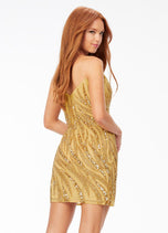 This fitted strapless v-neckline cocktail dress features an intricate bead pattern. This dress is complete with a v-back and fitted skirt.