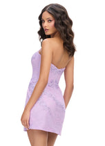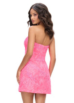 We're obsessing over this lacey look! This strapless cocktail features a bustier style top with lace applique and press on stones scattered throughout to give you a little extra SPARKLE!