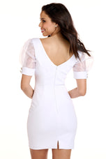 Ava Presley's 2024 Homecoming collection unveils a charming short dress that epitomizes elegance and style. The dress features puff short sleeves, adding a touch of vintage allure to its modern silhouette. Crafted from a soft, luxurious fabric, this fitted dress drapes beautifully, flattering every curve. The square neckline frames the collarbones delicately, exuding a classy yet cute appeal. Perfect for a night of dancing and celebration, this dress is a statement piece that effortlessly captures attention. Whether you're sipping champagne or twirling on the dance floor, this dress promises to make you feel beautiful and confident all evening long.