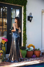 Shine like never before in the Ava Presley Strapless Metallic Corset Prom Dress 29261! This stunning gown features a fitted strapless corset bodice that beautifully shapes your figure, providing a chic and elegant look. The fitted ruched skirt cascades down in flattering lines, enhancing your silhouette while adding a touch of drama.Designed for comfort and confidence, this prom dress allows you to dance the night away without a care. Pair it with sparkling accessories and your favorite heels to complete the look. With the Ava Presley 29261, youre sure to turn heads and create unforgettable memories on your special night!