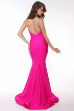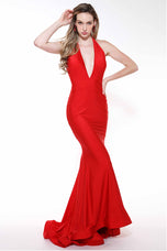Turn heads in the Ava Presley 34587 prom dress! This fitted mermaid gown hugs every curve, featuring a daring plunging V-neck with a halter neckline for a modern, sleek touch. The open back adds subtle allure, while the floor-length skirt flows into a graceful train for timeless elegance. Simple yet striking, this prom dress is perfect for the girl who wants to feel confident, sophisticated, and unforgettable.