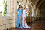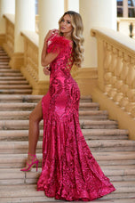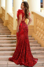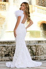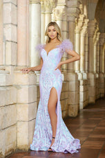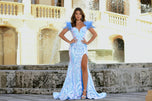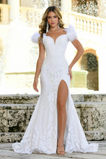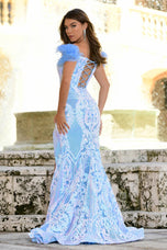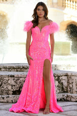 Introducing Ava Presley's Style 38892, a mesmerizing vision tailored for Prom 2024. Embrace elegance with feather sleeve accents and intricate, elegant sequins adorning this stunning gown. A daring high slit and a graceful lace-up back harmonize seamlessly, culminating in an ensemble that's as captivating as it is sophisticated. Step confidently into the spotlight, embodying sheer charm and poise with this exquisite gown designed to leave a lasting impression at your prom.