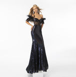 Prepare for an unforgettable night in the Ava Presley Style 39205 prom dress, a vision of sophistication and glamour. This off-shoulder ensemble boasts an illusion corset bodice that creates a mesmerizing silhouette. With its stunning feather shoulder detail and dramatic sequin embellishments, this prom dress is the epitome of elegance. Whether it's prom night or a special evening affair, step into this enchanting gown and make an entrance that speaks volumes about your style and grace. Elevate your prom experience with the unmatched allure of this stunning dress, designed to ensure you stand out among the crowd. Make this breathtaking prom dress your go-to choice for an evening filled with elegance, poise, and undeniable charm
