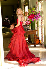 Imagine the spotlight finding you in the Ava Presley 39556. This glamorous evening dress is designed for unforgettable nights, whether you're a pageant contender, prom queen, or simply turning heads at a formal event. The sheath silhouette hugs your curves for a flattering fit, while the tiered train overlay adds a touch of drama and elegance as you move. The beaded neckline adds a touch of sparkle, perfect for catching the light and turning heads. Ava Presley 39556: where timeless design meets modern glamour.