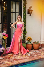 Simply stunning and ready to shine, the Ava Presley Color Block Tight Prom Dress 40085 is a show-stopping choice for your next big event! This striking mermaid gown features an asymmetrical color block bodice that adds a contemporary twist to classic elegance. The tight-fitted skirt hugs your curves beautifully, ensuring you feel confident and fabulous with every step you take.With a daring open back and a chic slit, this dress brings the perfect blend of sexy and sleek to your look. The exquisite watteau train flows gracefully behind you, creating a dramatic entrance that will leave everyone in awe. Crafted from luxurious satin, this long evening dress is ideal for prom or any special occasion, making you feel like the ultimate queen of the night. The Ava Presley Color Block Tight Prom Dress 40085 is your ticket to unforgettable moments and endless compliments!