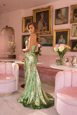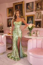 Make a lasting impression at prom with the Ava Presley Illusion Sequin Prom Dress 40112, a dazzling choice for those who love all things glam. This slim-fit prom gown features a stunning combination of sequins and mesh, giving you a sparkling, radiant look thats perfect for the spotlight. With a sleek strapless design and a scoop neckline, it offers a sophisticated, modern silhouette thats ideal for prom night or any formal event. The low open back, accented with a zipper-up closure, adds a bold, sultry touch, while the thigh-high slit and sweep train provide both movement and drama. Covered in shimmering sequins and intricate beading, this illusion prom dress is the ultimate pick for an unforgettable night of glitz and glamour. Whether you're looking for a jaw-dropping prom dress or a statement-making evening gown, this sequin masterpiece has everything you need for a show-stopping entrance!