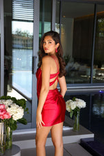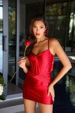 Ava Presley style 47131 is the ultimate mix of timeless and trendy perfect for the girl who wants classic with a twist. This short satin dress features a structured corset bodice that cinches in all the right places, giving that snatched, sculpted vibe. Criss-cross ruching sits just under the bodice while soft ruching across the bust adds a touch of detail that keeps the whole look flirty and fresh.But let us talk about that back because it is everything. The double straps start off sweet and simple, but once you turn around, it is all about the drama. The unique back strap design is bold, eye-catching, and seriously one-of-a-kind. It creates a look that is striking without being over the top, adding that unexpected twist that sets this dress apart from the rest. Whether you are walking in or walking out, all eyes will be on you and that is exactly the point.Style 47131 is for the girl who wants to feel confident, polished, and a little extra. With its satin finish, flattering fit, and bold back, this dress is ready to steal the spotlight.