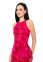 Betsy & Adam Halter Floral Chiffon Dress A26513