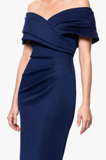Make a statement in the Betsy and Adam "Sue" Dress, Style A27094, a stunning off-the-shoulder design perfect for any formal occasion. Crafted from luxurious techno scuba fabric, this dress features elegant draping and a flattering, figure-hugging silhouette that exudes timeless beauty. The sleek, knee-length cut, hidden back zipper, and top-lined construction offer both comfort and a polished finish. With its refined sophistication and confident style, the "Sue" dress ensures you’ll leave an unforgettable impression wherever you go.