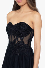 Be the epitome of flirty charm at your homecoming in the Blondie Nites 3793BN dress. This A-line beauty combines a corset-style bodice with delicate mesh and lace details, creating an enchanting look that will make heads turn. The corset accentuates your figure, while the mesh and lace add a touch of romance and femininity. With its flirty design, this dress is perfect for twirling on the dance floor and creating unforgettable memories. Get ready to captivate hearts and exude confidence in the Blondie Nites 3793BN homecoming dress, where elegance meets playfulness in the most enchanting way.