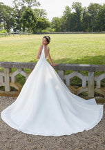 Imagine this--your romantic, outdoor ceremony with all your loved ones and you, walking down the aisle in your dream dress! A simple, classic ball gown with a plunging v-neckline, we have just the style to complete your vision! The Sara wedding dress is featured in Morilee's Spring 2020 Blu Bridal Gown collection and boasts an affordable price tag without sacrificing style! Please call our Dallas, Texas location to check in-store availability, pricing and current ship dates.