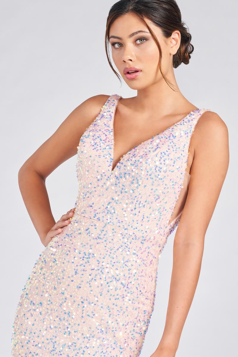 The fabric in this Colette by Daphne style is Stretch Sequin, Novelty Fabric