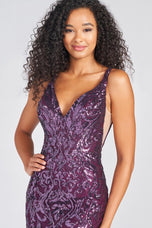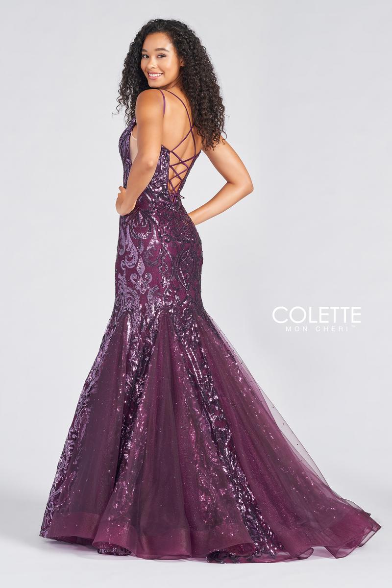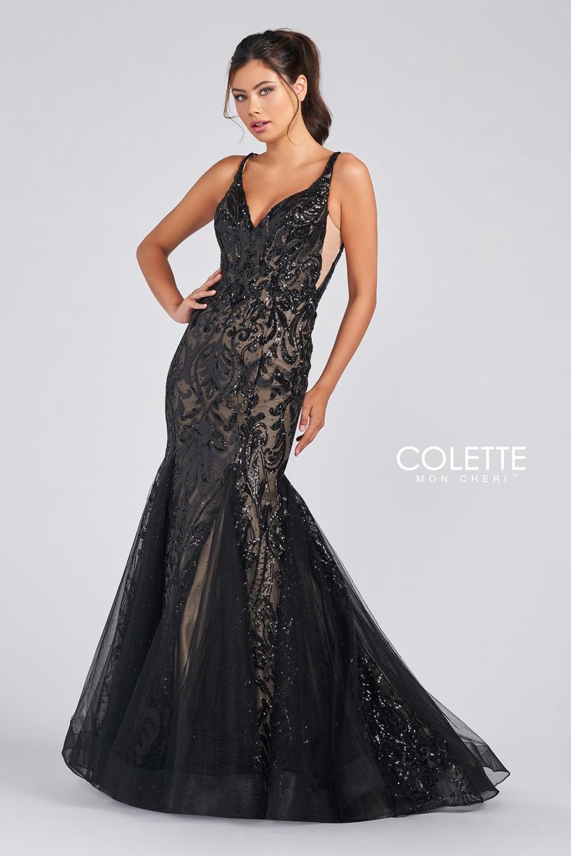 The fabric in this Colette by Daphne style is Stretch Sequin, Rhinestone Accents, Stretch Jersey