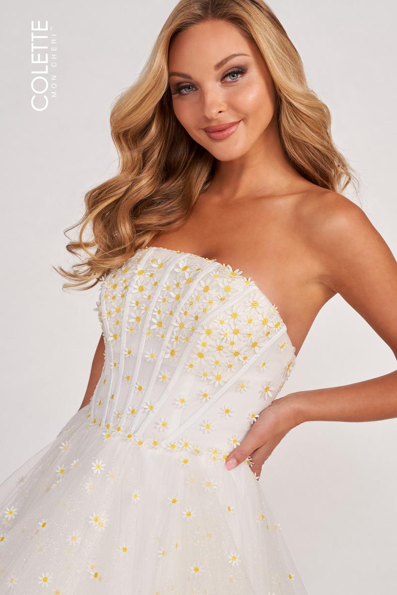 Strapless, Corset Bodice, Glitter Tulle, Daisy Embellishment