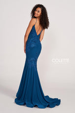 Stretch Jersey, V-Neckline, Beaded Lace Appliques, Horse Hair Hem