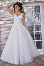 Aline Ballgown with Lace Applique on Tulle Skirt, Glitter Lace, Stone Acdents, Lace Up Back