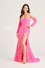 Sequin Tulle Over Lace, High Slit, Matching Gloves, Beaded Straps, Lace-Up Back, Hem
