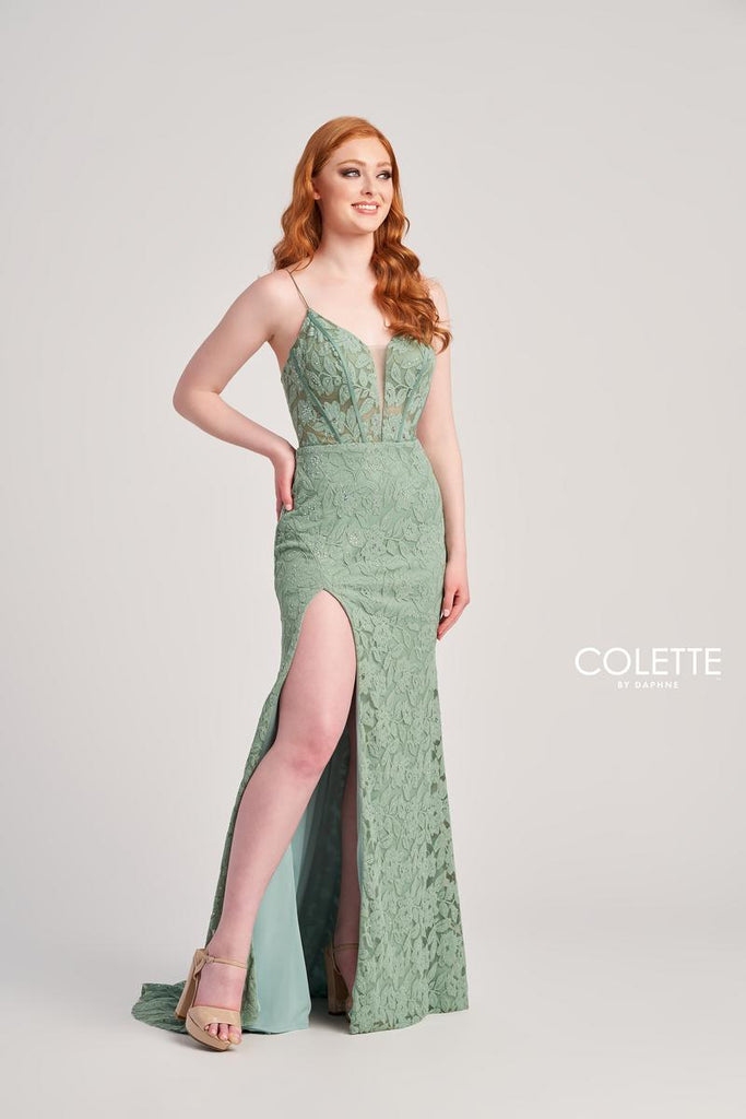 Stretch Lace with Stone Embellishment, Corset Bodice, High Slit, Lace-Up Back