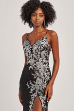 The fabric in this Colette by Daphne dress is Stretch Sequin Mesh, Sequin Applique, Stretch Lining, Horsehair
