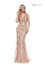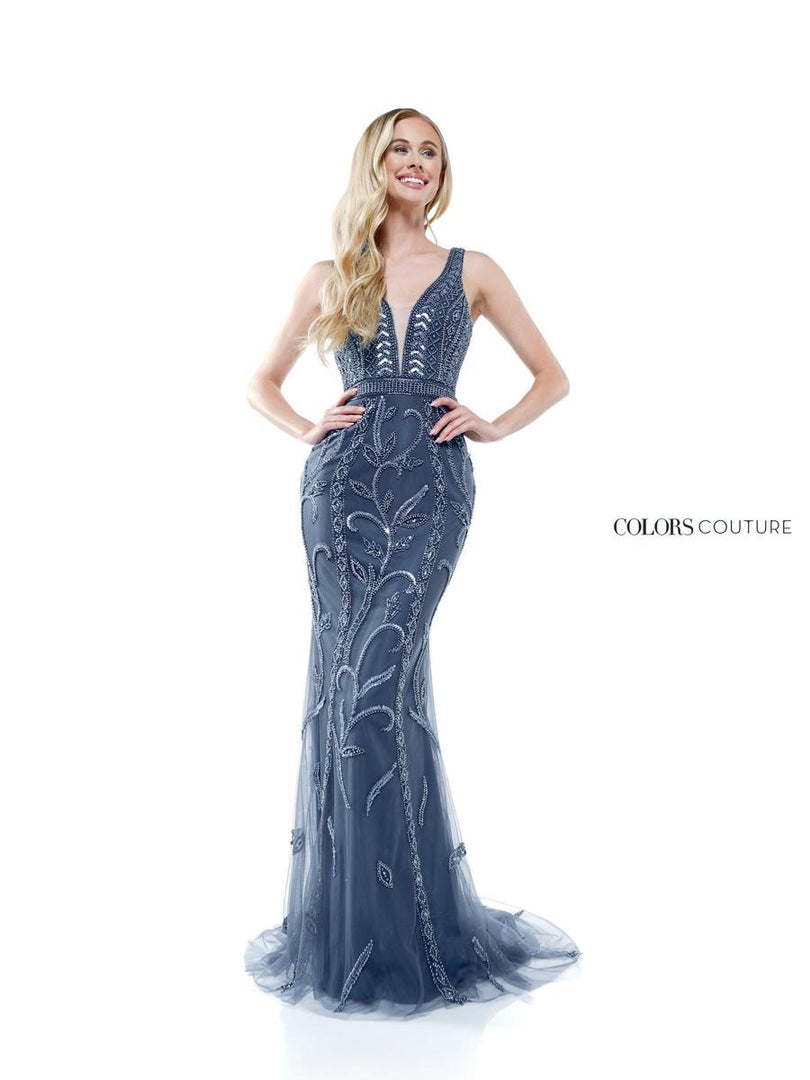 Be the star of the show in this long dress designed by Colors Couture! Style J124 is a full beaded dress featuring an elegant v-neckline and scoop backline. The intricate beading pattern and soft, sweep train finish this look perfectly. This long beaded dress is sure to have you turning heads all night long. This dress is perfect for prom, galas, pageants, or any other special occasion. Find your dream dress at Terry Costa!