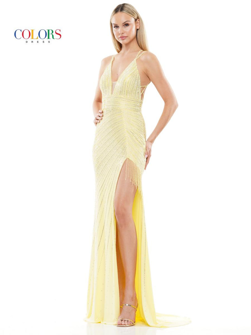 The fabric in this Colors Dress style Matte Jersey with Hot Fix Stones