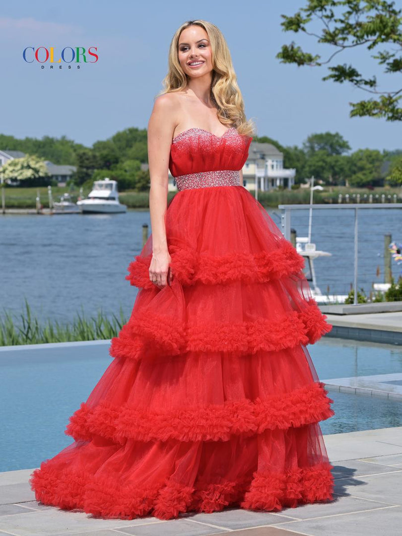 The fabric in this Colors Dress style Ruffle Tulle with Beaded Mesh