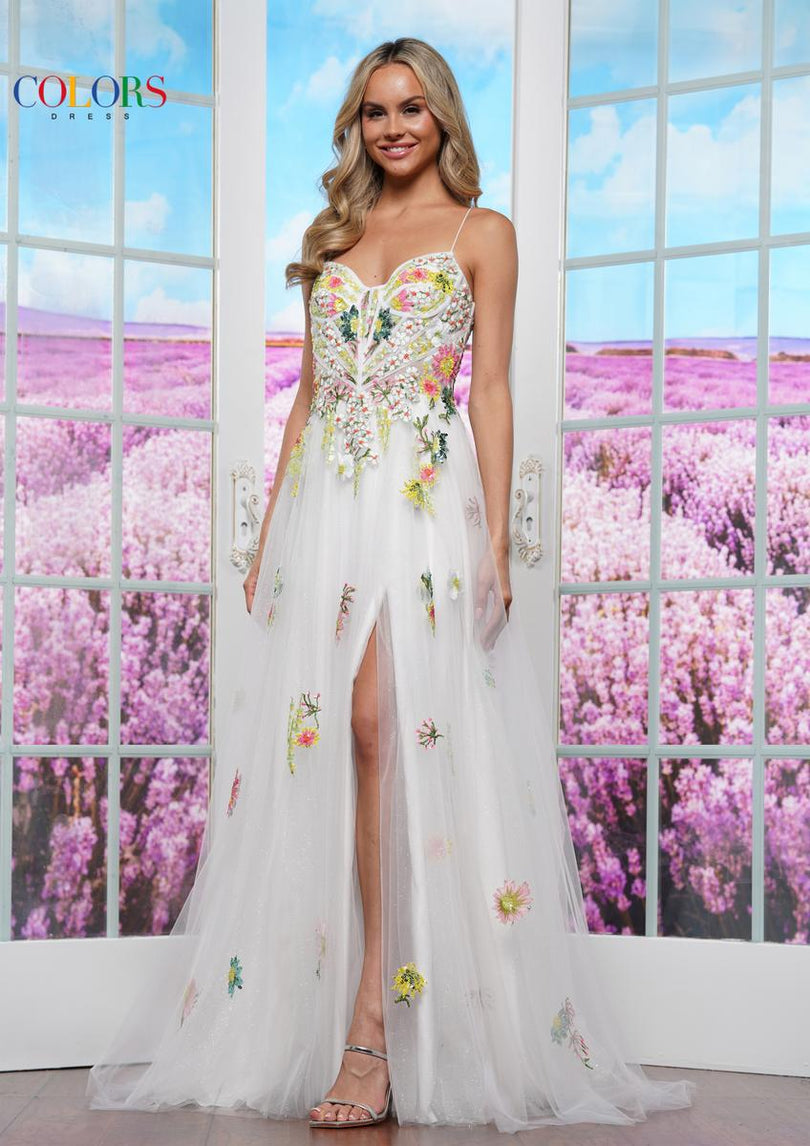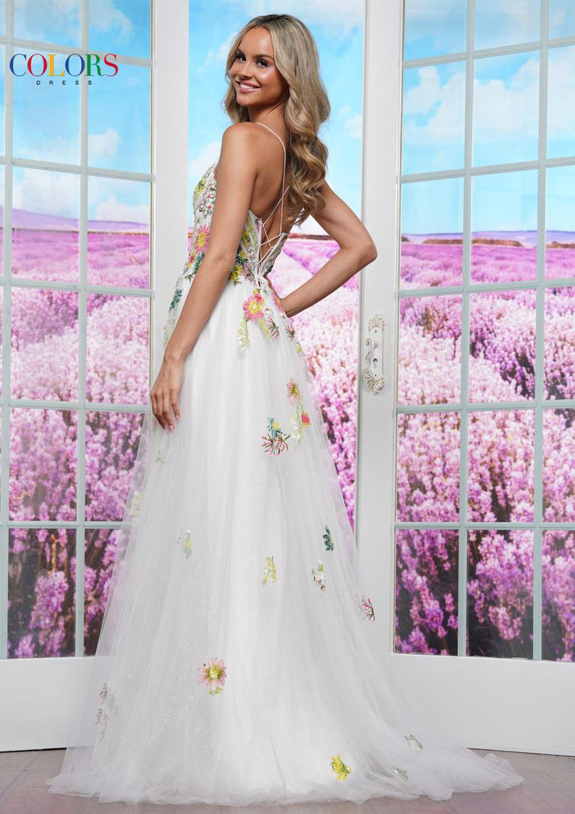 The fabric in this Colors Dress style Tulle with Flower Applique
