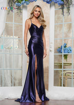 Walk into your event with absolute class and confidence in this stunning Colors prom dress. The 3602 gown is designed to make you stand out effortlessly, featuring a chic wrap bodice that flatters your figure while adding a touch of elegant sophistication. The metallic jersey fabric catches the light with every step, giving you a radiant, glowing look thats impossible to ignore.The ruched skirt enhances your curves beautifully, creating a smooth, sculpted silhouette that feels both comfortable and glamorous. And for the perfect finishing touch, the dazzling thigh-high slit brings the right mix of drama and allure, allowing you to move with ease while making a bold statement.Available in deep green, hot pink, navy, orange, and red, this Colors prom dress offers a vibrant range of stunning shades so you can choose the perfect color to match your confidence, personality, and big-night energy. This is the dress that guarantees youll shine all night long.