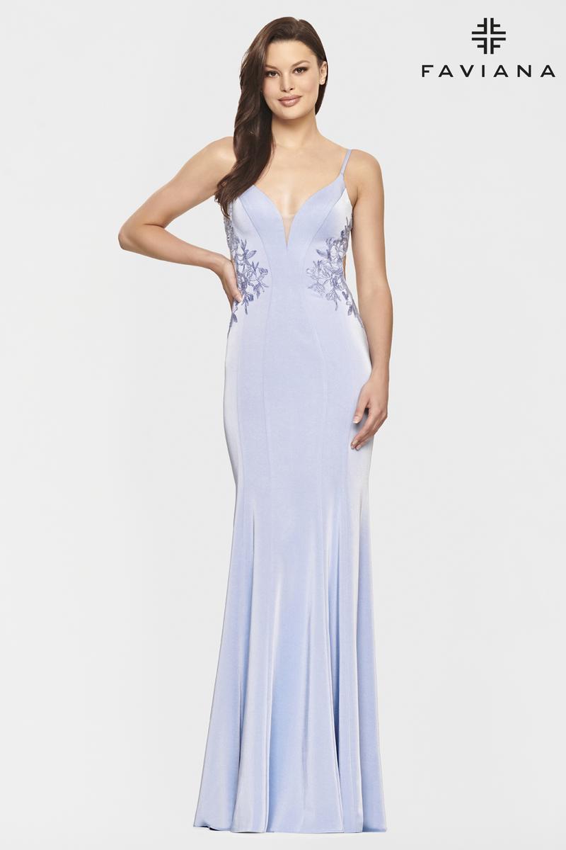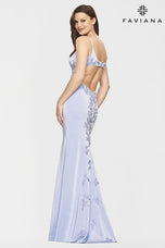 Show off your beautiful curves in Faviana style s10815. This beautiful gown has daring side cut outs that create a beautiful open back design. The long fit and flare skirt has shimmering lace appliques down the back of the dress to really make you the talk of the night. If you are looking for a fabulous long prom dress or a special occasion dress then shop right here at Terry Costa.
