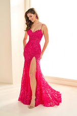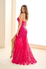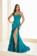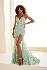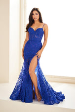 The fabric in this Ellie Wilde by Mon Cheri style is Embroidered Tulle, Lace Applique, Glitter Tulle, Tulle, Stone Accents. This style features a Corset Bodice, Low Back, SlitThis romantic Ellie Wilde prom dress features a breathtaking design crafted from embroidered tulle, which delicately adorns the fabric with floral patterns. The glitter tulle catches the light and enhances the dress's ethereal quality. The corset top displays a plunged v-neckline with thin straps and lace-up for a snug waist. This is the perfect choice for prom night!