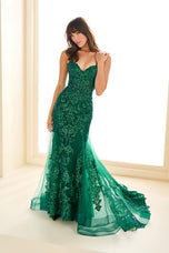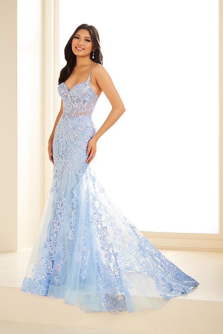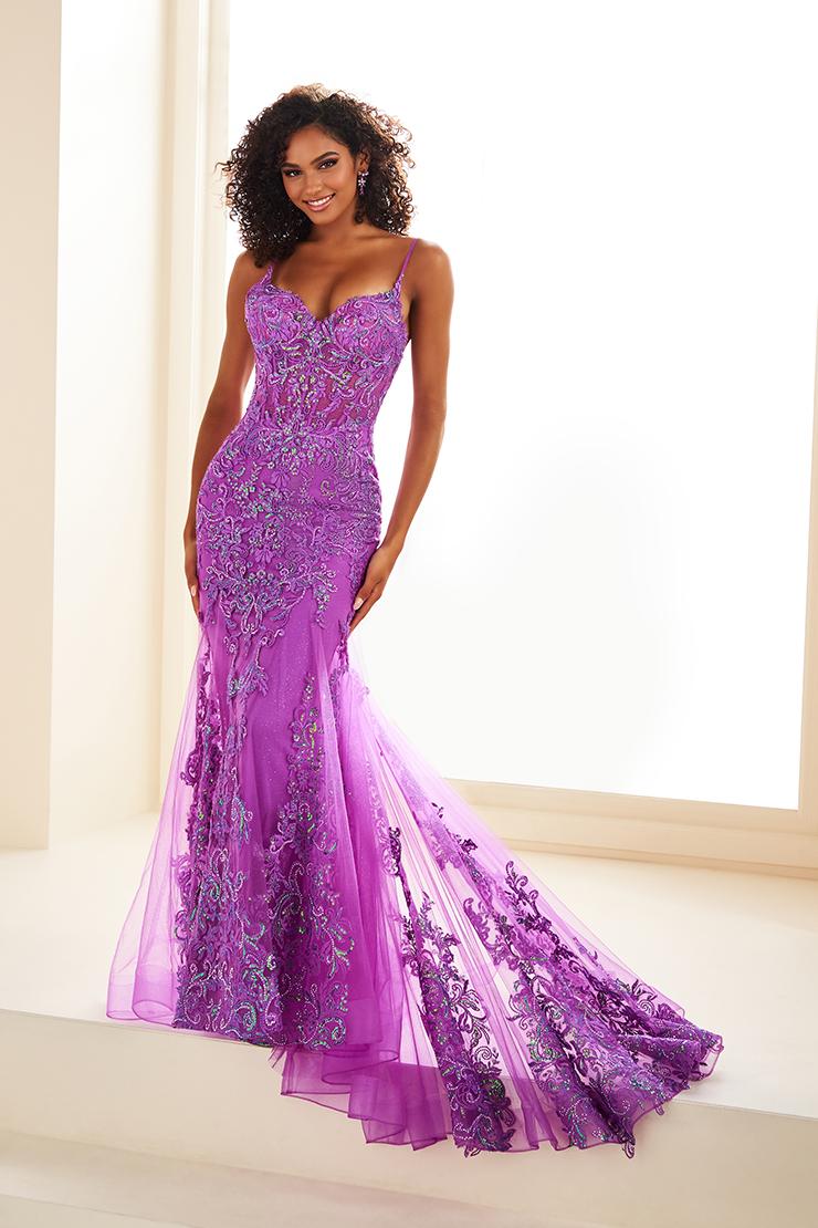 This dress is everything you need to make a statement. Style EW36069 by Mon Cheri is absolutely gorgeous! The sweetheart neckline brings all the romance, while the thin straps keep it delicate and classy. The corset bodice gives you that snatched, hourglass vibe, and the embroidery adds the perfect touch of detail to make it stand out. Lets not forget the glitter tulleit's totally giving fairy-tale vibes with just the right amount of sparkle. The sweep train adds that extra drama as you float into the room. And let's talk about the embroidery at the end of the train, CLASSIC yet modern!Perfect for prom, a gala, or anywhere you want to be the main event.