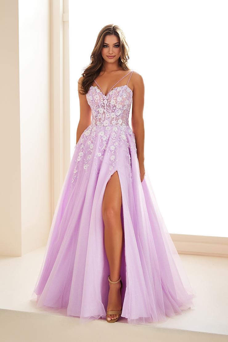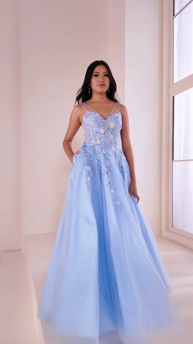 Style EW36079 by Mon Cheri is a masterpiece of modern elegance and romantic charm. Featuring geometrically place straps, it adds a unique and contemporary twist to its design, while perfectly framing the shoulders and back! The beautifully structured corset bought his scopes to figure, and sharing a flattering and sexy fit. Girl, the delicate floral and embellishments and sequins cascade throughout, creating a stunning blend of shimmer and texture. The v-neckline enhances the cell way with the touch of allure, while the flowing tulle fabric brings an ethereal lightweight feel! Finishing off with the, This dress is the perfect balance of sophistication and beauty! It will truly make your prom unforgettable!